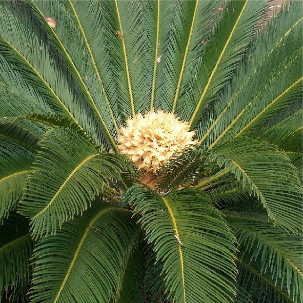 La palmera cica es una planta de crecimiento lento con un falso tronco grueso y velloso, coronado por un denso follaje de hojas rígidas, brillantes y pinnadas dispuestas en roseta. Es nativa de China y Japón, es una planta dioica (con ejemplares macho y hembra) y sus semillas y resto de partes son altamente tóxicas.